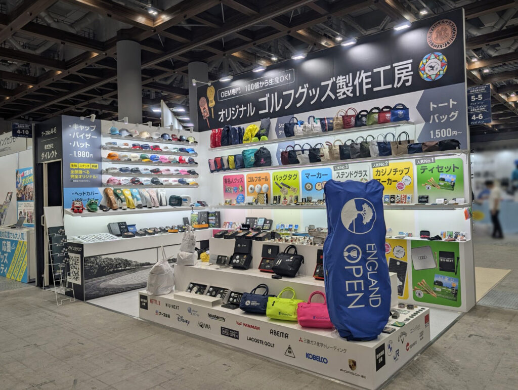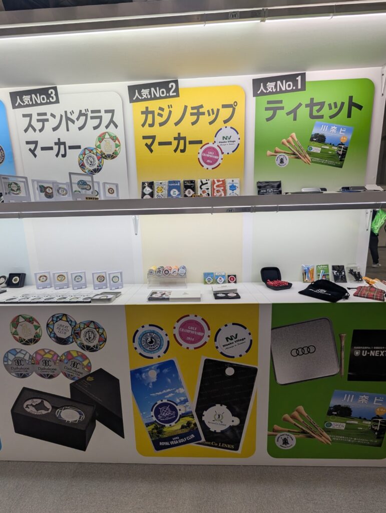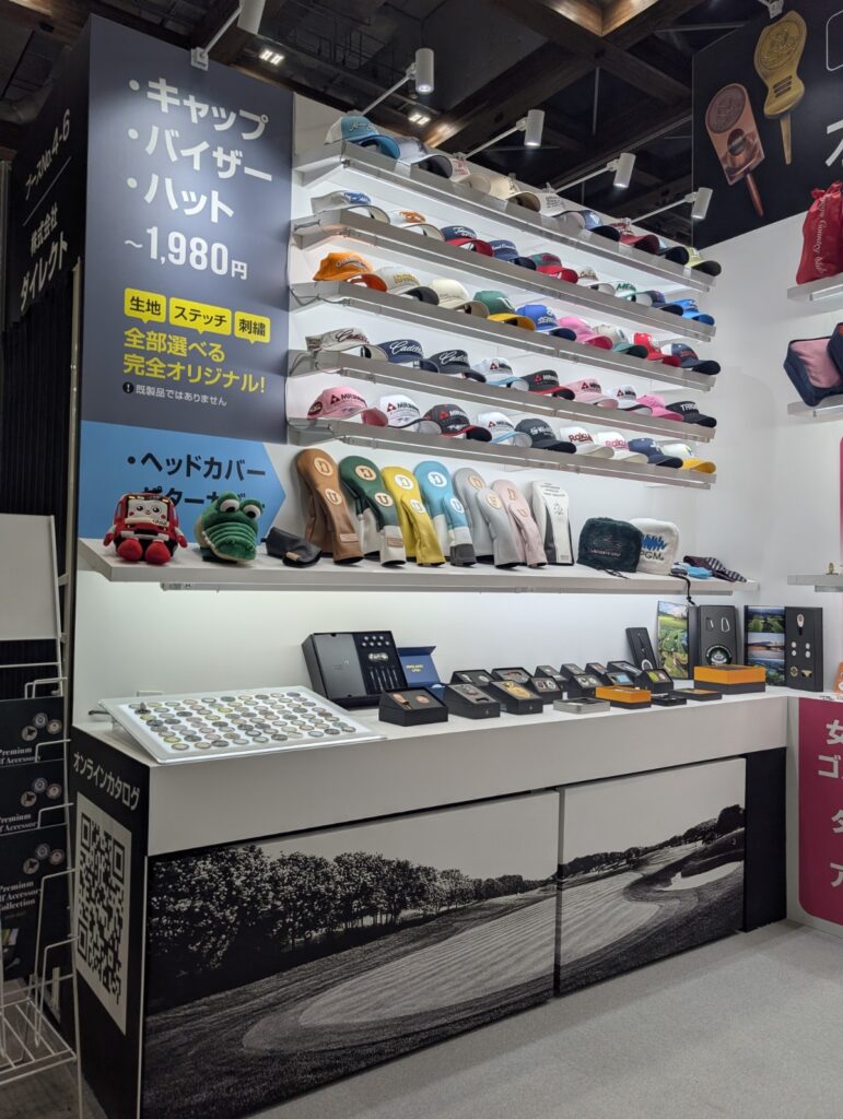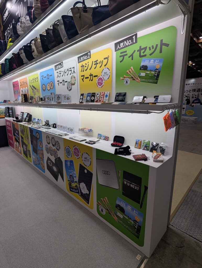 ブースでは、スポンサー企業向けの返礼品のゴルフセットを中心に展示を行っております。