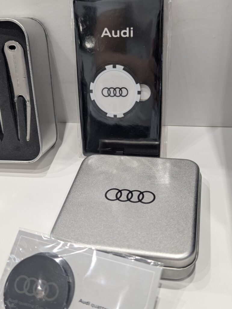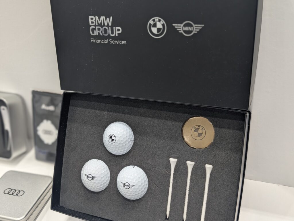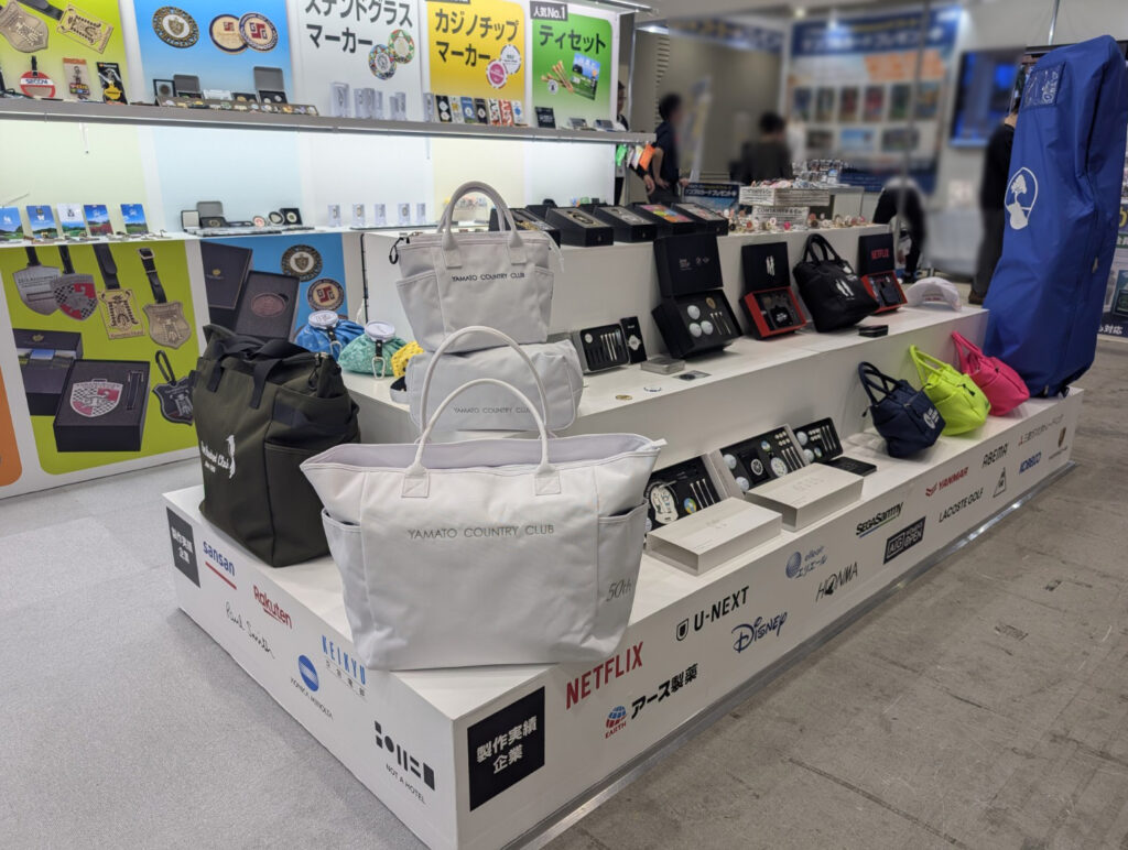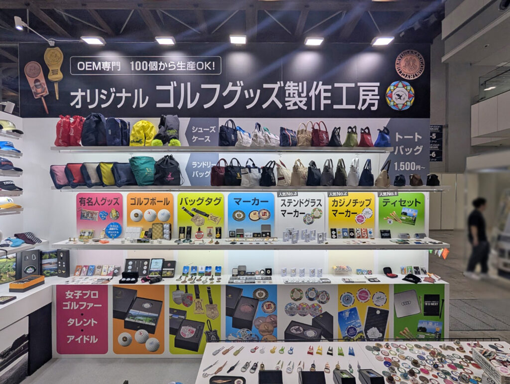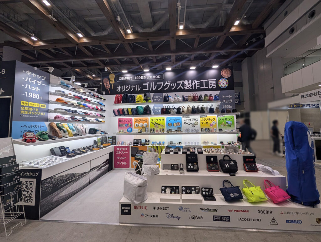 ブースでは、スポンサー企業向けの返礼品のゴルフセットを中心に展示を行っております。