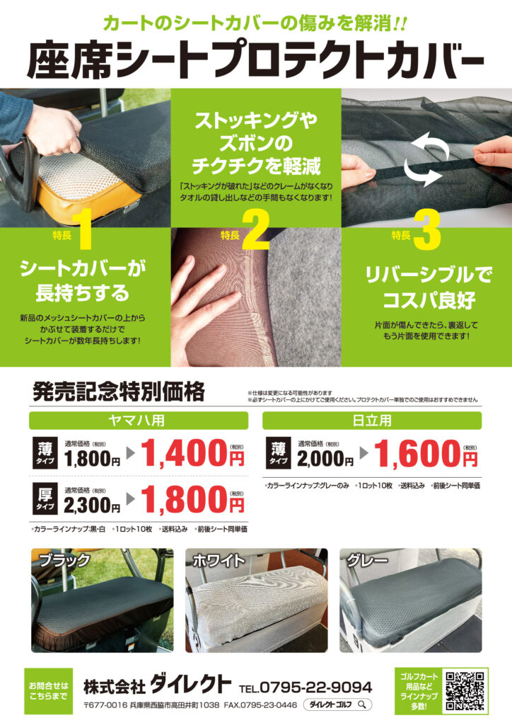 乗用ゴルフカートのシートを保護する「プロテクトカバー」について、